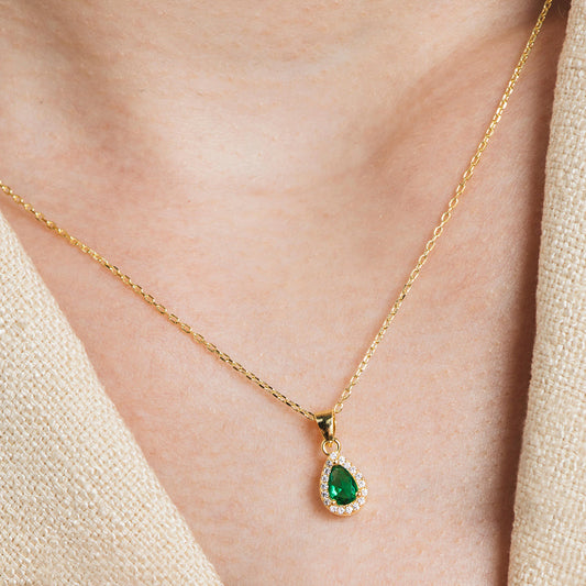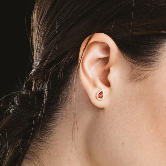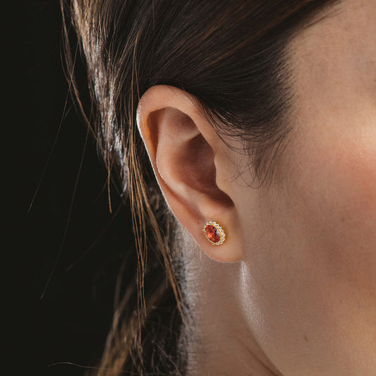 Conjunto de collar y pendientes bañada en oro con circonitas blancas y rojas