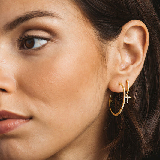 Pendientes aro grande bañada oro y circonitas
