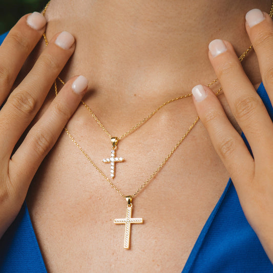 Collar de plata bañada en oro cruz y circonitas