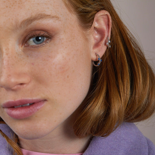 Pendientes aro de plata con circonitas azules